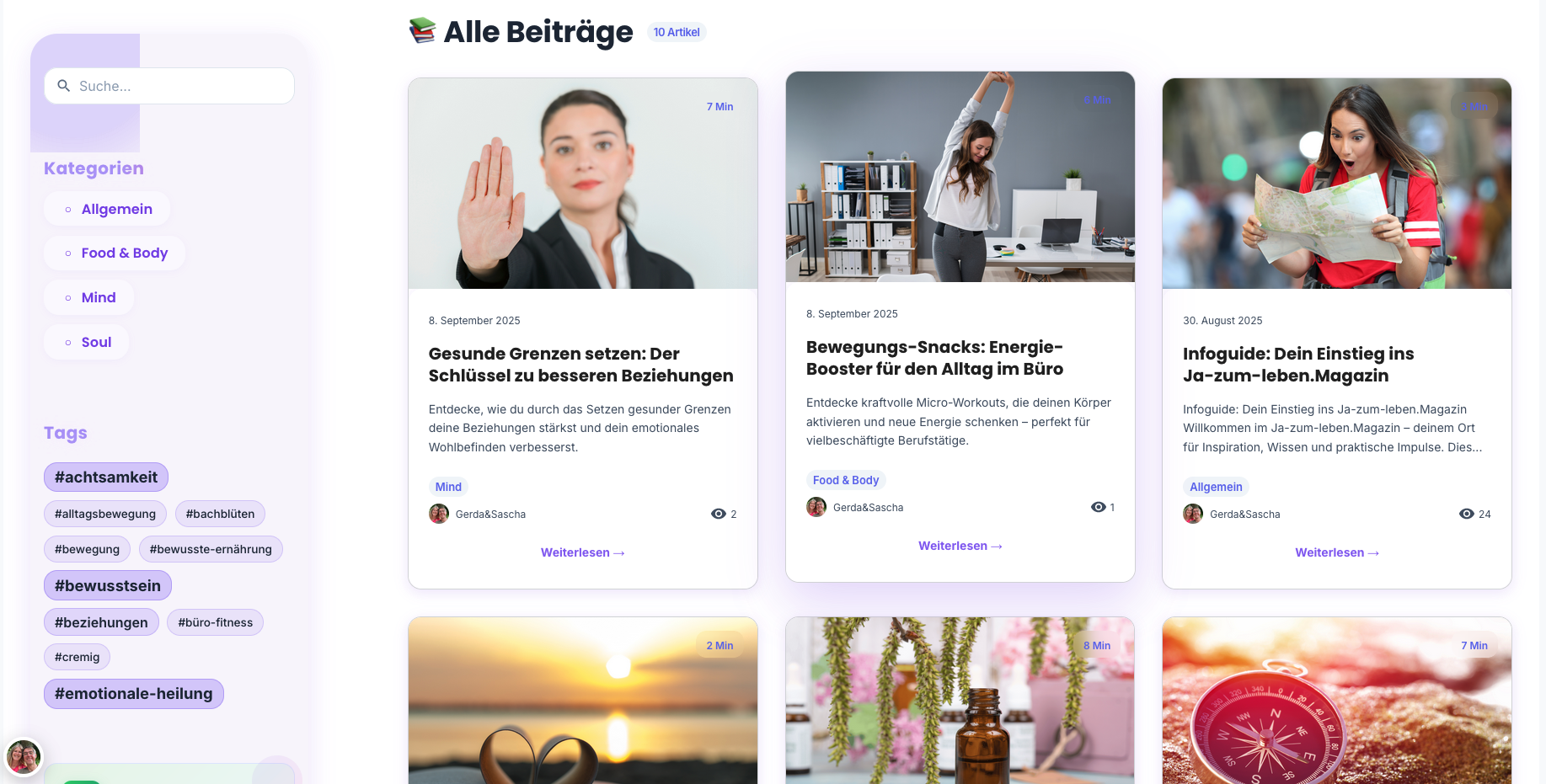 Gemeinsam auf dem Weg zu einem gesünderen und glücklicheren Leben. Wir unterstützen dich mit wertvollen Tipps und Inhalten.